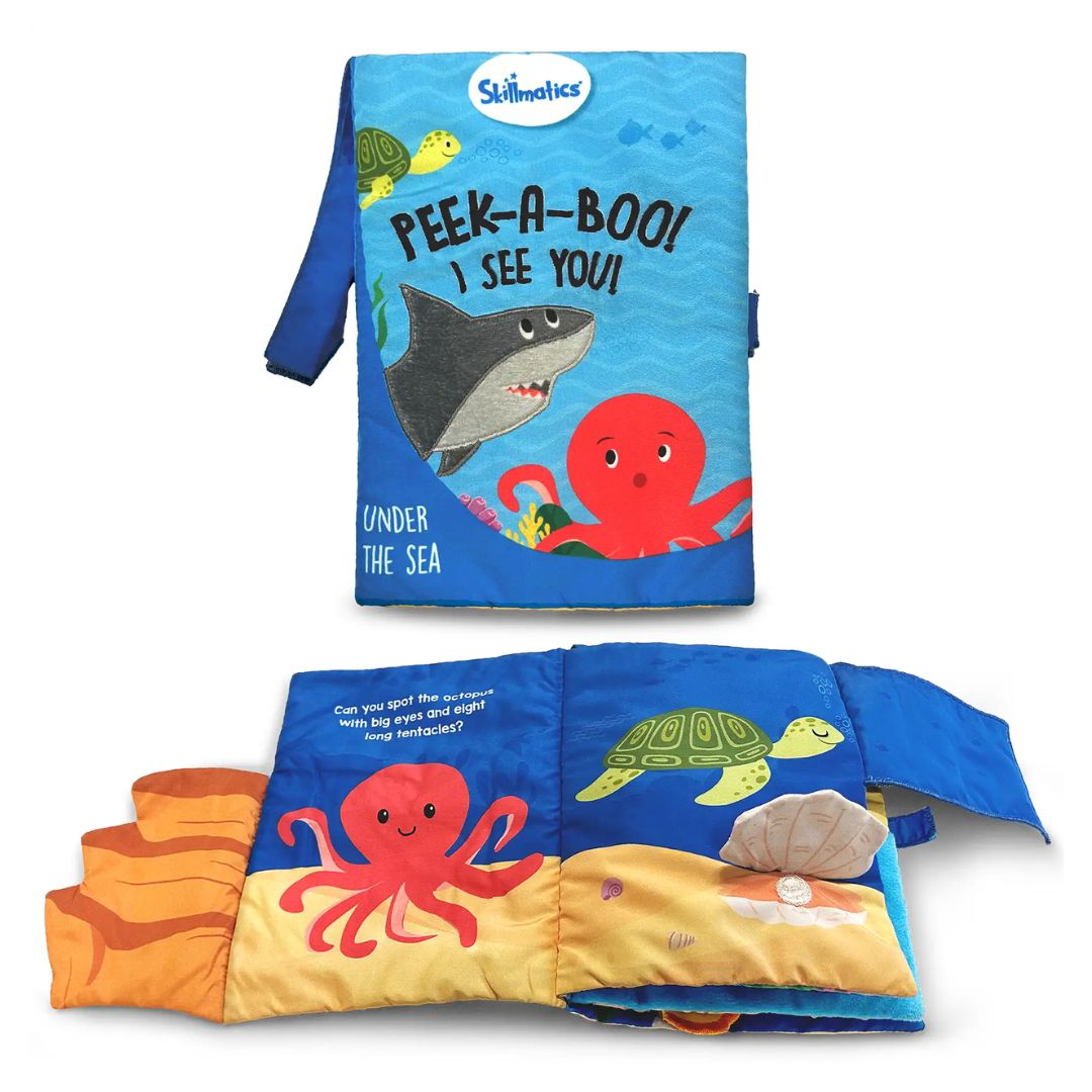 Introducing Skillmatics Peek-A-Boo! I See You! Fabric Book, the perfect educational and interactive companion for your little one's early development. This enchanting under-the-sea cloth book is specially designed for infants 6 months+.