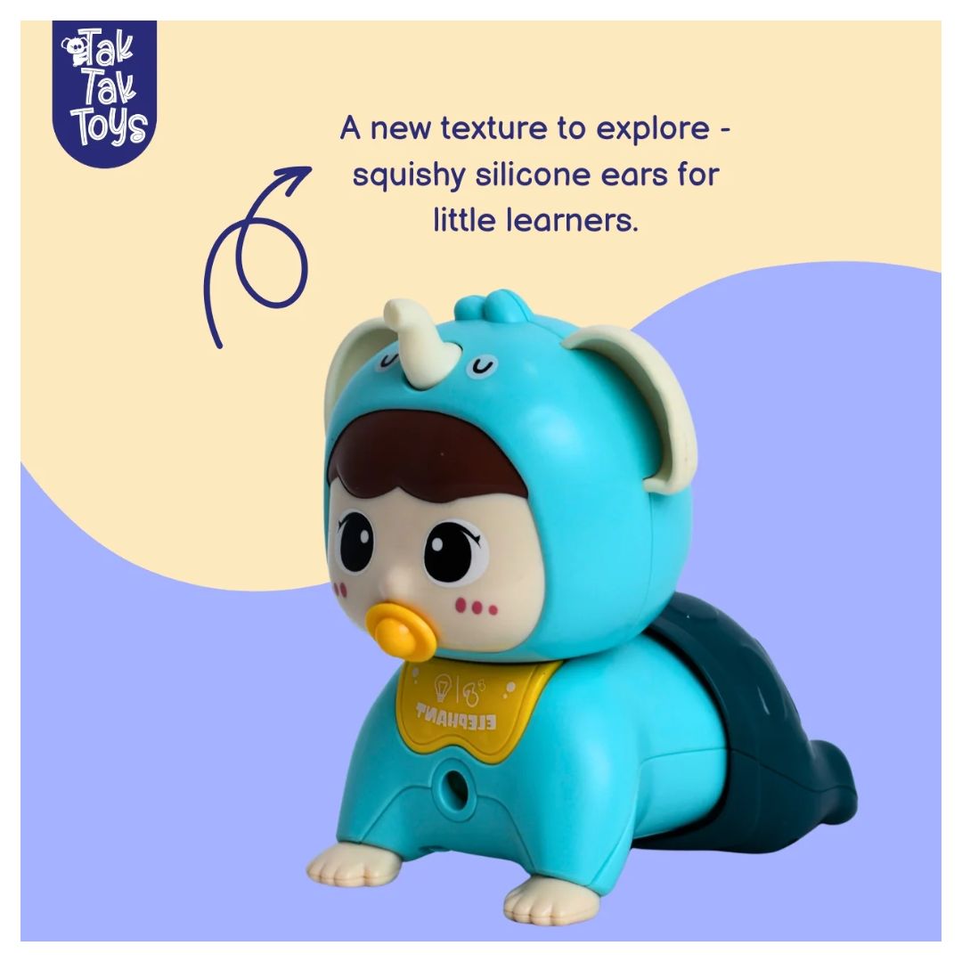 Tak Tak Toys Nubo Crawling Pal with Light & Sound | Interactive Elephant Costume Baby Toy | Crawling Doll for Kids | Age 6 Months+