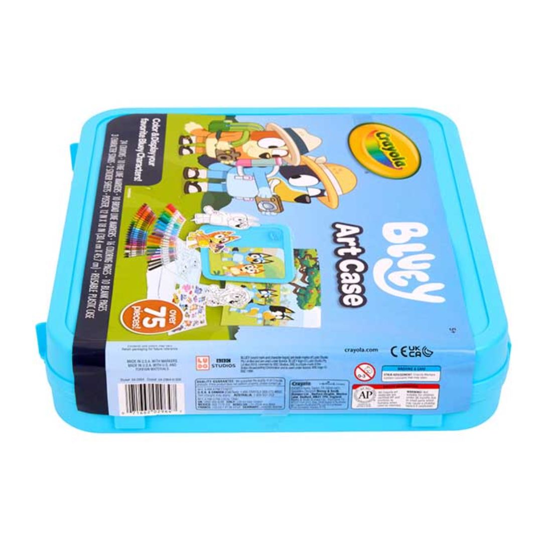 ALL-IN-ONE BLUEY ART KIT: Includes crayons, markers, coloring pages, blank sheets, stickers, standees, and a Bluey storage case.