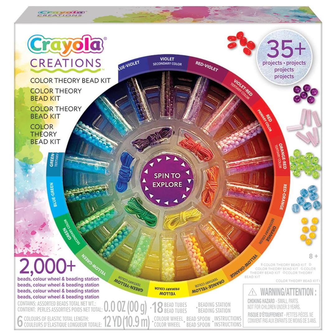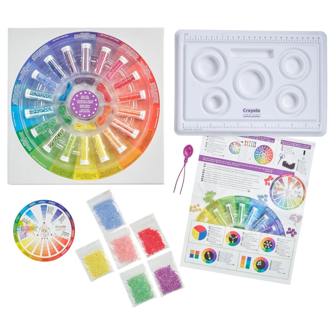 Create your own bracelets using color theory. Spin to explore the color wheel and create 35+ different color combinations using the 2000+ provided beads. Including a color theory guide to help you discover different color combinations. For ages 8+