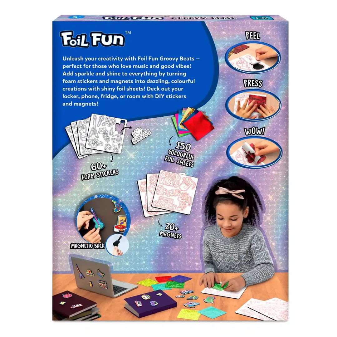 Get ready for endless creative fun with the Foil Fun Groovy Beats Art Kit, the ultimate craft activity for kids who love music and sparkle. This Foil Fun Groovy Beats set is packed with everything your child needs to design, decorate, and shine. With colourful foil sheets, kids can transform stickers and magnets into dazzling masterpieces that feel perfectly in tune with their love for rhythm and beats.