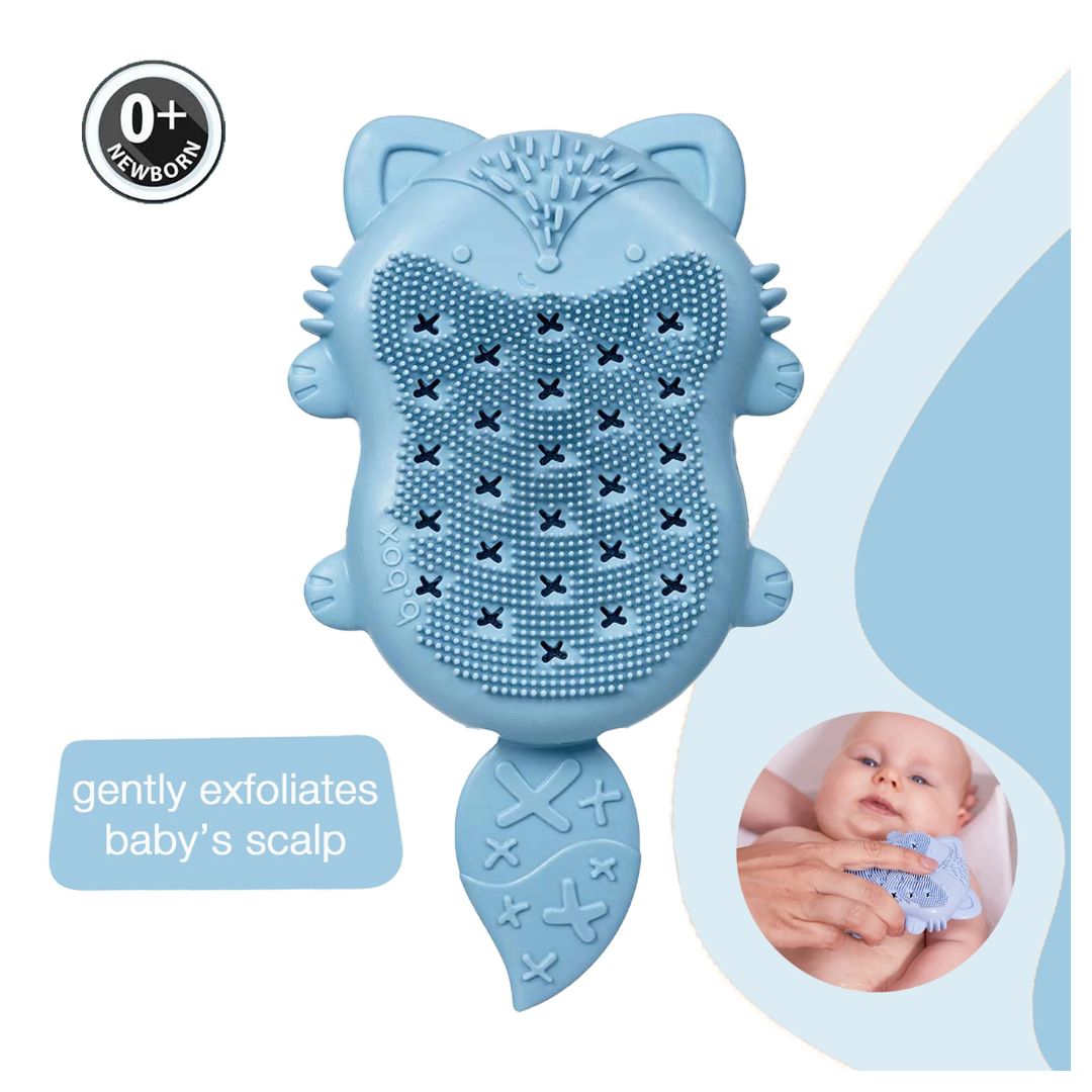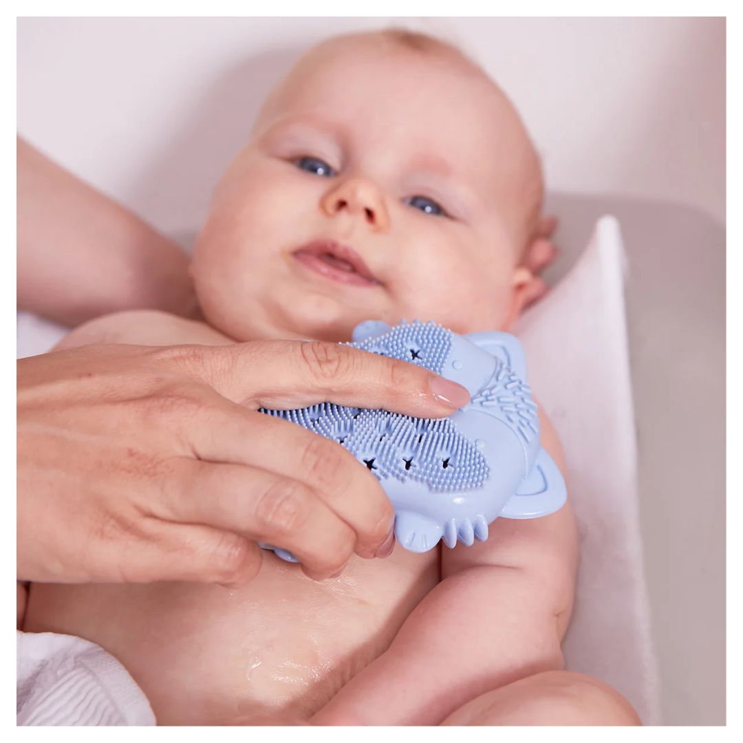 A gentle solution for bathing baby, our adorable fox baby bath brush + sponge is a baby care essential! Oh-so-soft silicone bristles on one side assist with the gentle removal of cradle cap, softening and exfoliating baby's scalp.