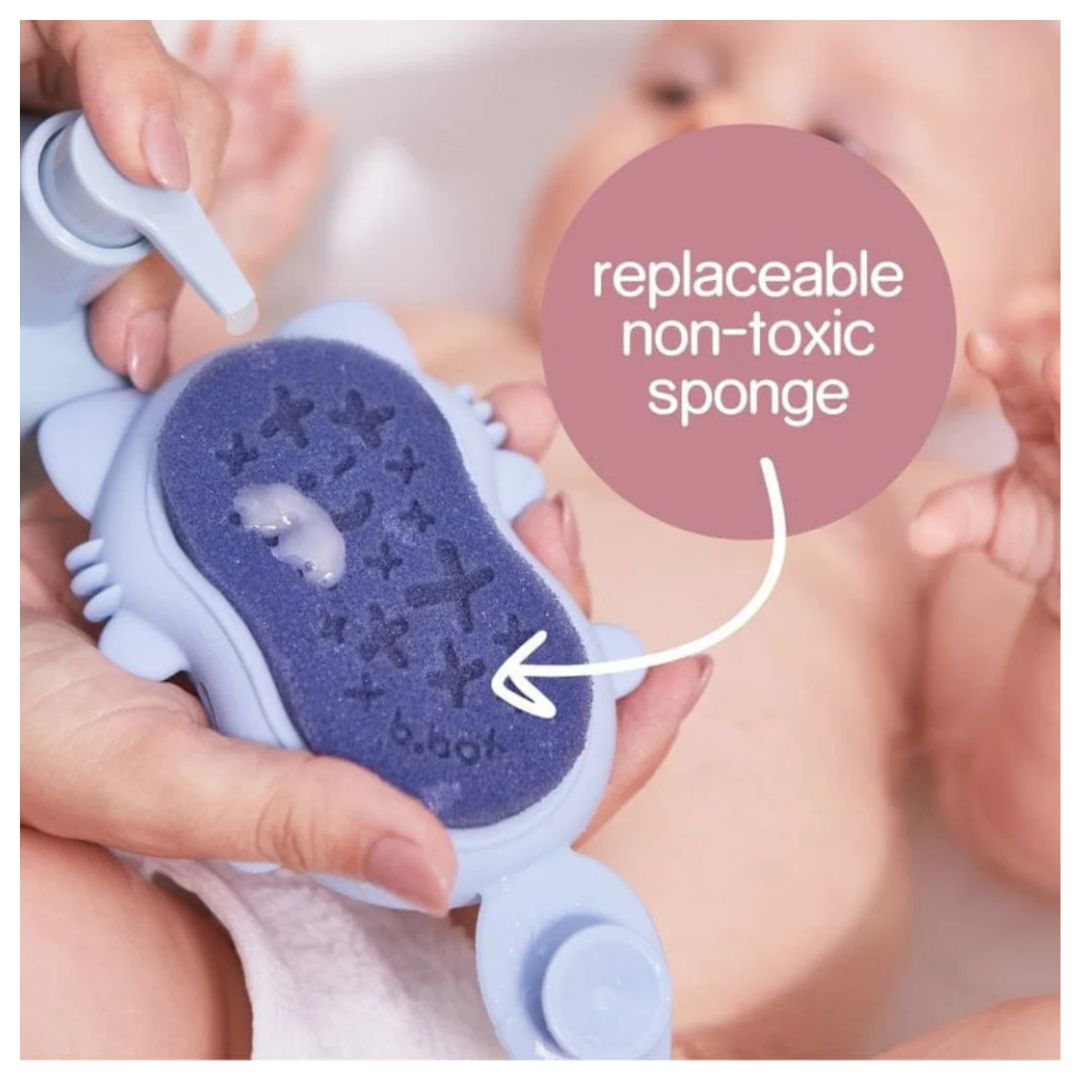 On the reverse, a replaceable non-toxic sponge is suitable for everyday use. The perfect partner to our b.box body range, the baby bath brush + sponge is the ideal compliment when used with cleanse, soothe + nourish to help bathe and nurture your little one.