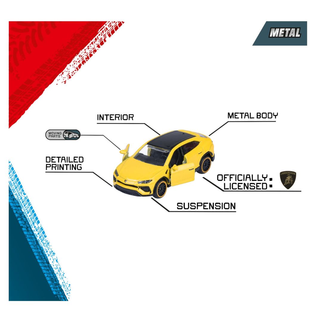 Packed with power and adrenaline, this Majorette car edition in a set of 5 reflects the range and fascination of Lamborghini! Whether Sián, Urus, Centenario or Countach: the 7.5 cm tall metal toy cars race across the floor in a fast-paced racing car design thanks to their freewheel and suspension. Loving details such as opening doors or hoods ensure exciting play experiences - some model cars even have the legendary gullwing doors!