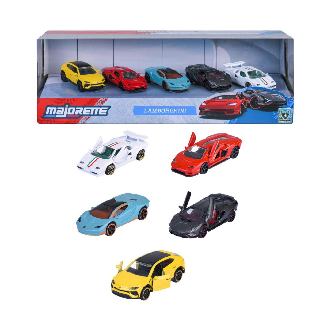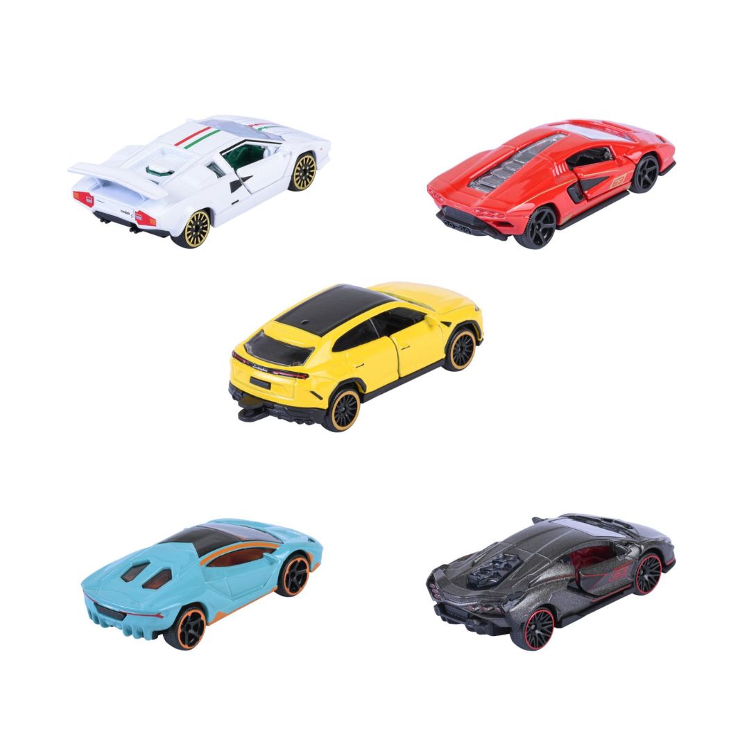 Majorette Lamborghini car set (5 cars) - 5 extraordinary metal model cars with freewheel & opening parts, toy cars for collectors & children aged 3 years and over, 7.5 cm each