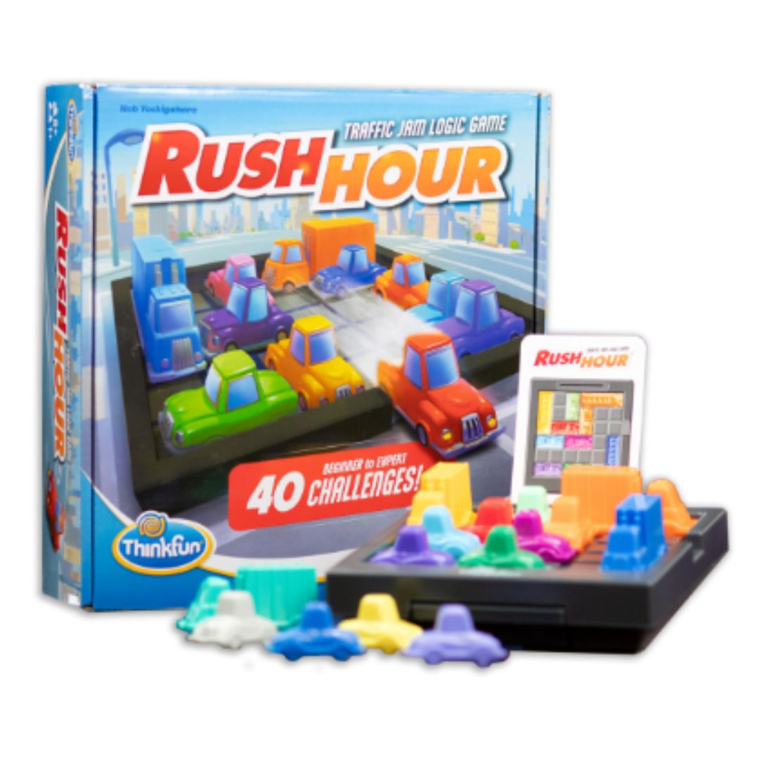 Now with 40 New Challenges! Voted one of Parents’ Choice Best 25 Toys of 25 Years! In this famous STEM toy and brain game you set up the traffic challenge and battle the gridlock as you slide the blocking vehicles out of your way to find a path for your red car to exit! This game features four levels of difficulty, allowing players to progress at their own pace. With 40 all-new challenges, it’s even more bumper-to-bumper fun for all ages!