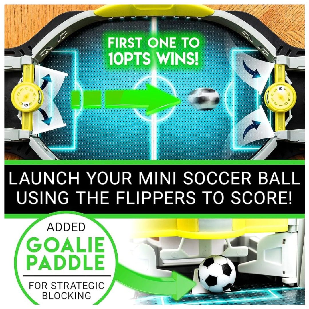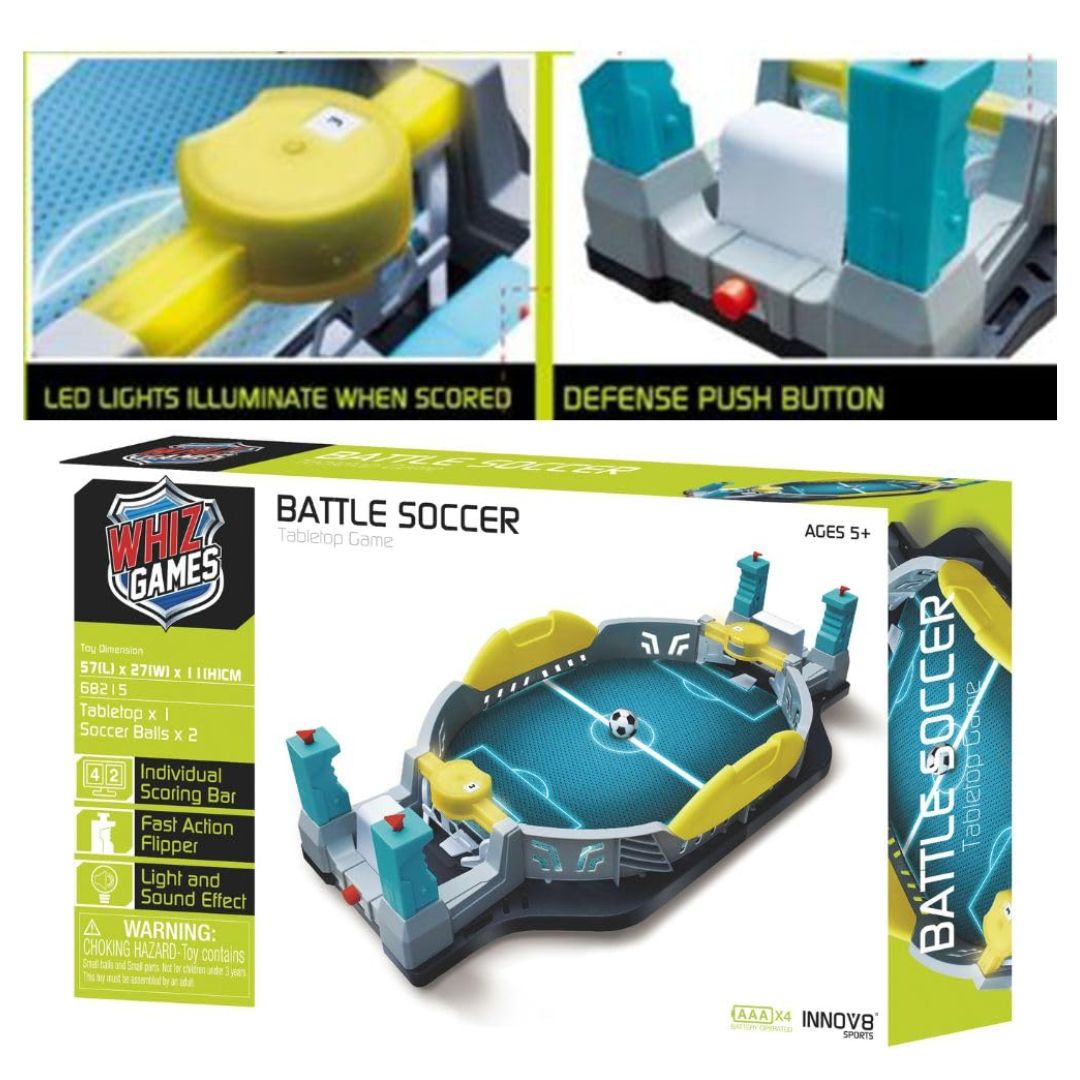 Bring the excitement of soccer home with Innov8 Sports Battle Soccer This dynamic tabletop game features dual fast-action flippers, mini soccer balls, and a built-in score tracker, delivering a fast-paced arcade experience. With sound effects, lighting, and durable construction, it's perfect for family game nights, developing hand-eye coordination, and friendly competition. Suitable for ages 5+, it's easy to set up and store, making it ideal for home use.