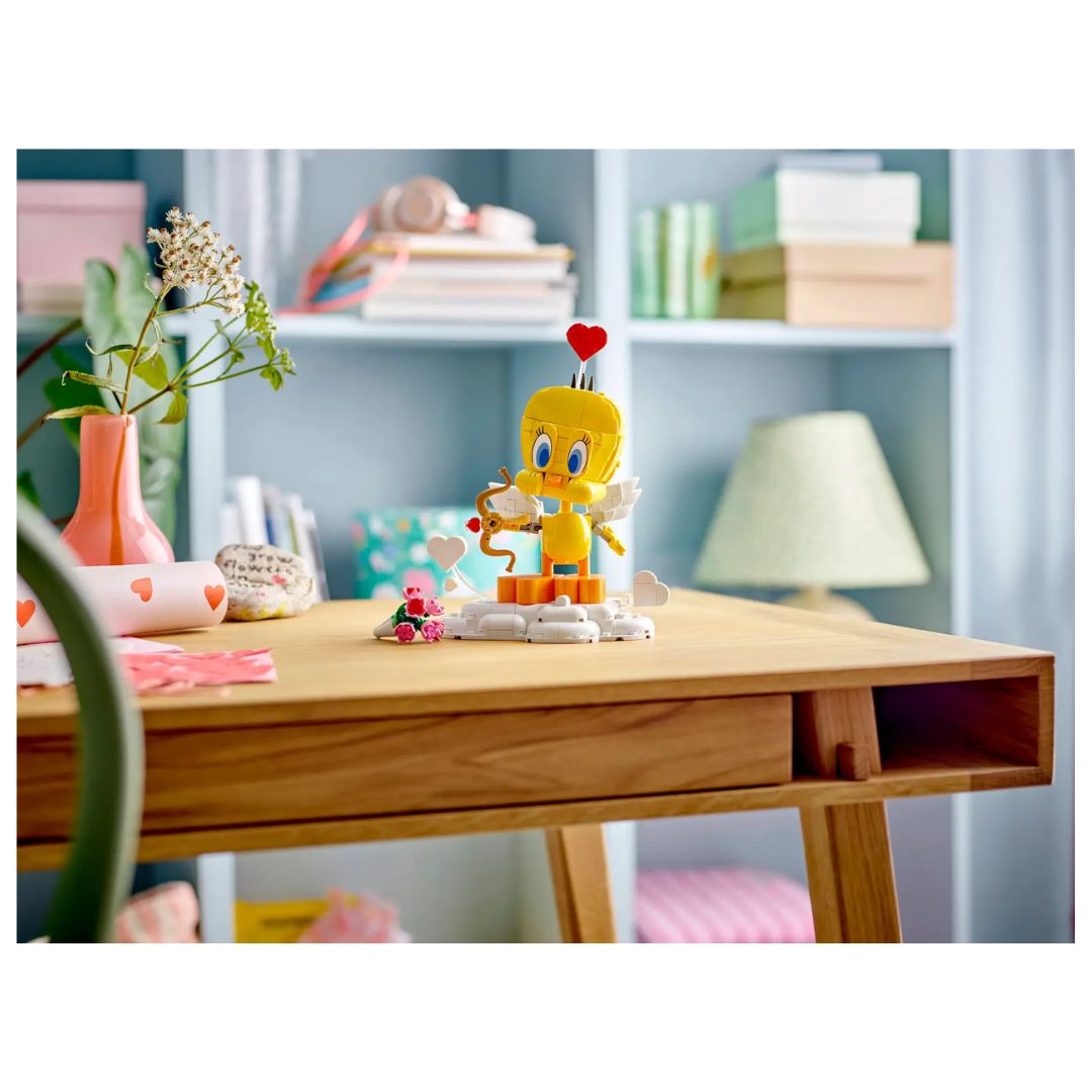 Style Tweety as Cupid by placing him on his cloud with the bow and arrow accessories. Or give him the flower bouquet and place the heart above his head to show his romantic side. The figure features lots of posable details such as Tweety’s head, wings, tail and feet. With the eye-catching accessories, this LEGO set creates a display piece that’s sure to make hearts flutter.