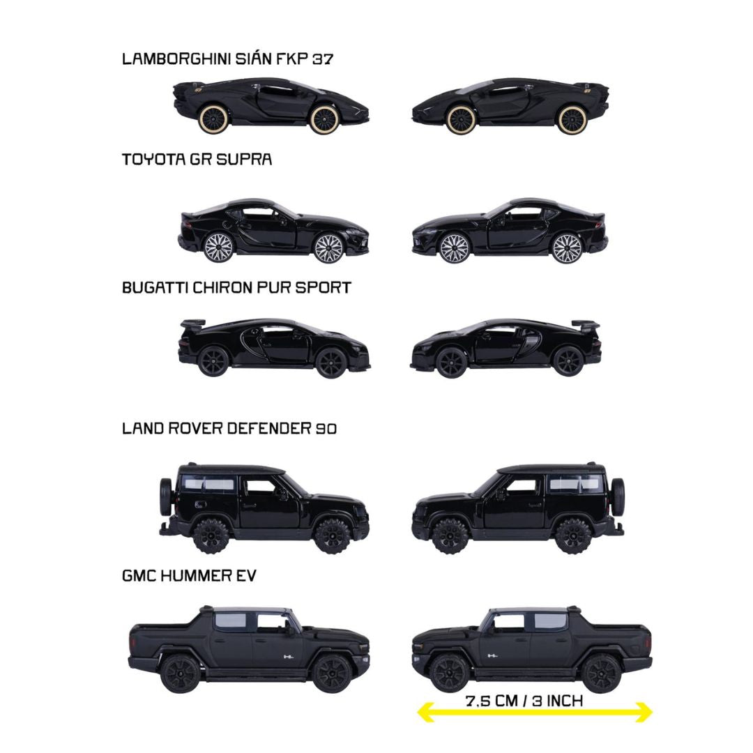 • All in Black Look - Exclusive model cars in deep black coolness: The Majorette Black Edition 2.0 presents 5 powerful dream cars with black paintwork - for racing champions aged 3 and up.