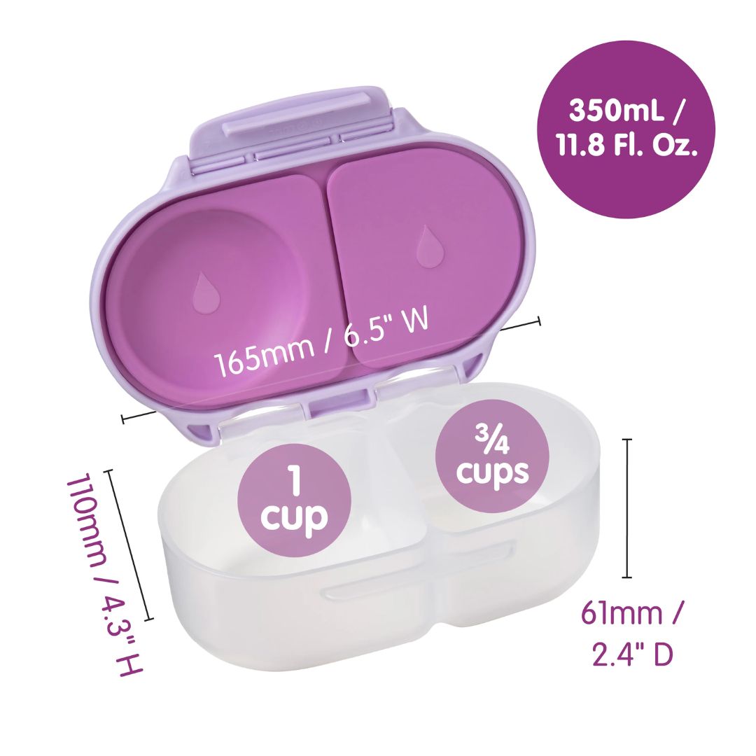 • 2 sealed compartments are leak proof securing wet foods such as puree, yoghurt and dips