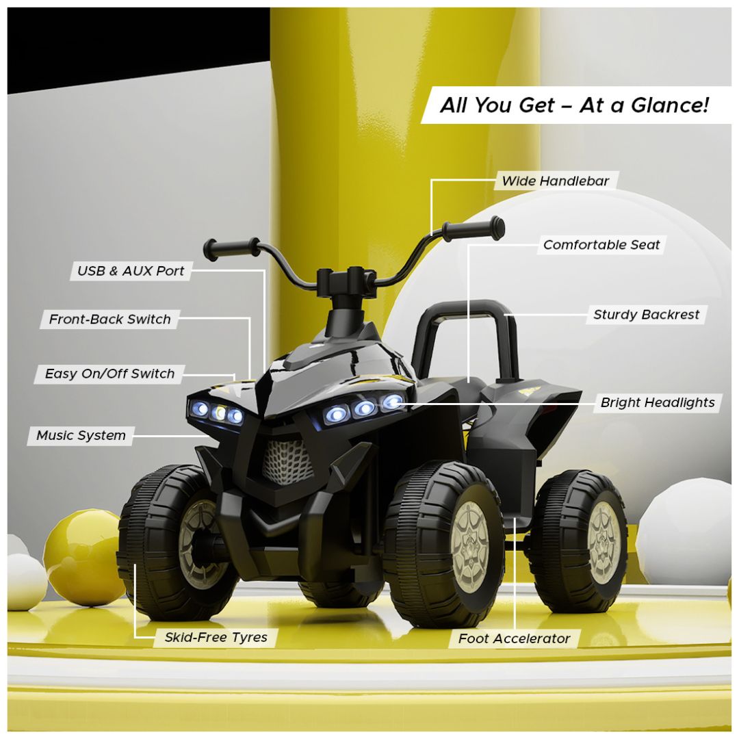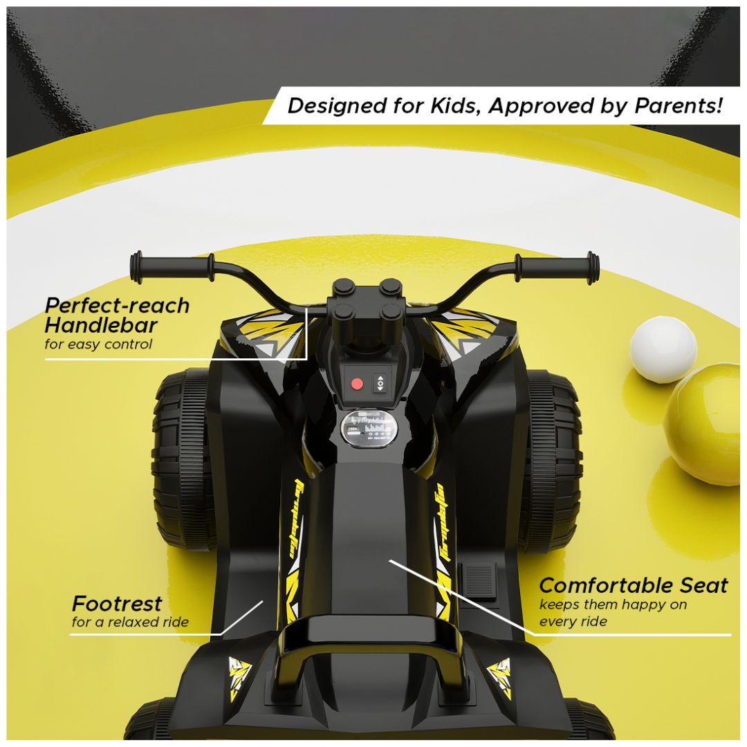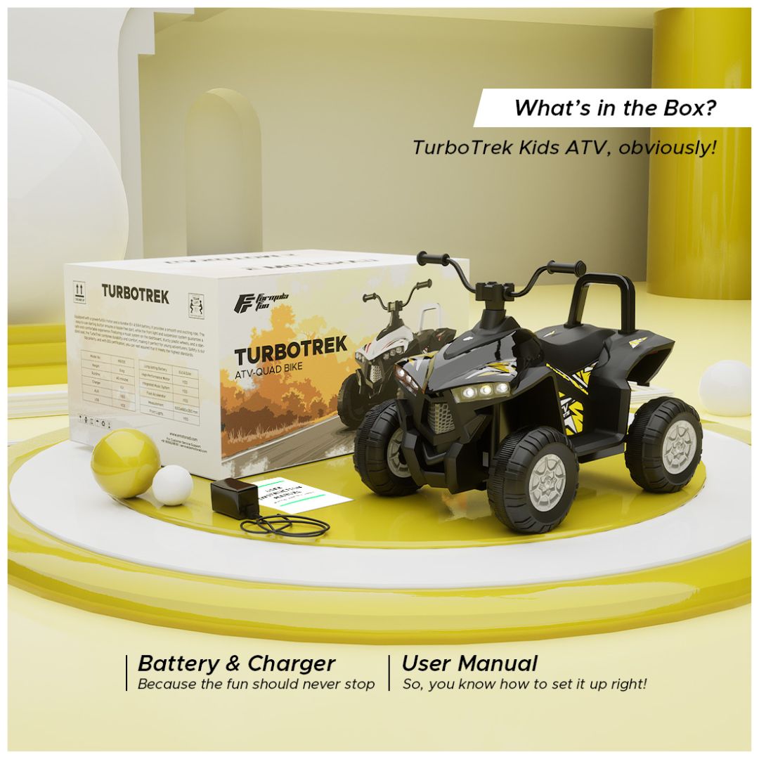 Get ready for an exciting ride with the Kids' ATV Quad Bike! TurboTrek mini quad bike packs all the adventure into a kid-friendly design, making it perfect for little explorers. With its vibrant colours and tough exterior, it’s built for both fun and safety. Let your little ones hit the trails in style and create unforgettable memories on their very own TurboTrek ATV!