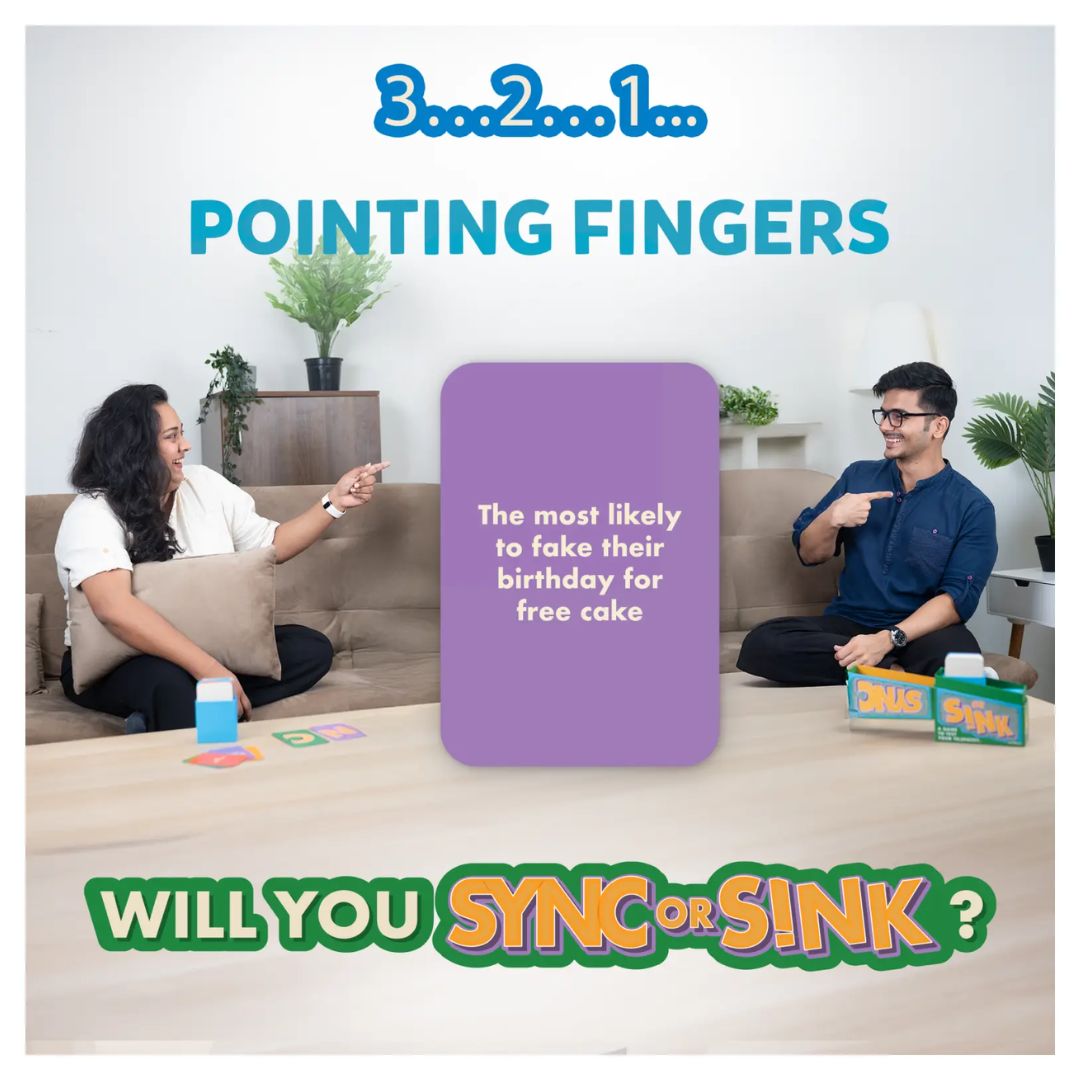 Think you and your partner are on the same wavelength? Sync or Sink puts your telepathy to the test! Draw a card, read the prompt, and try to blurt out the same answer or pull off the same action at the exact same time. Stay in sync to survive, or spell S-I-N-K and you’re out! The last pair standing wins! Perfect for parties, family nights, and hilarious get-togethers.
