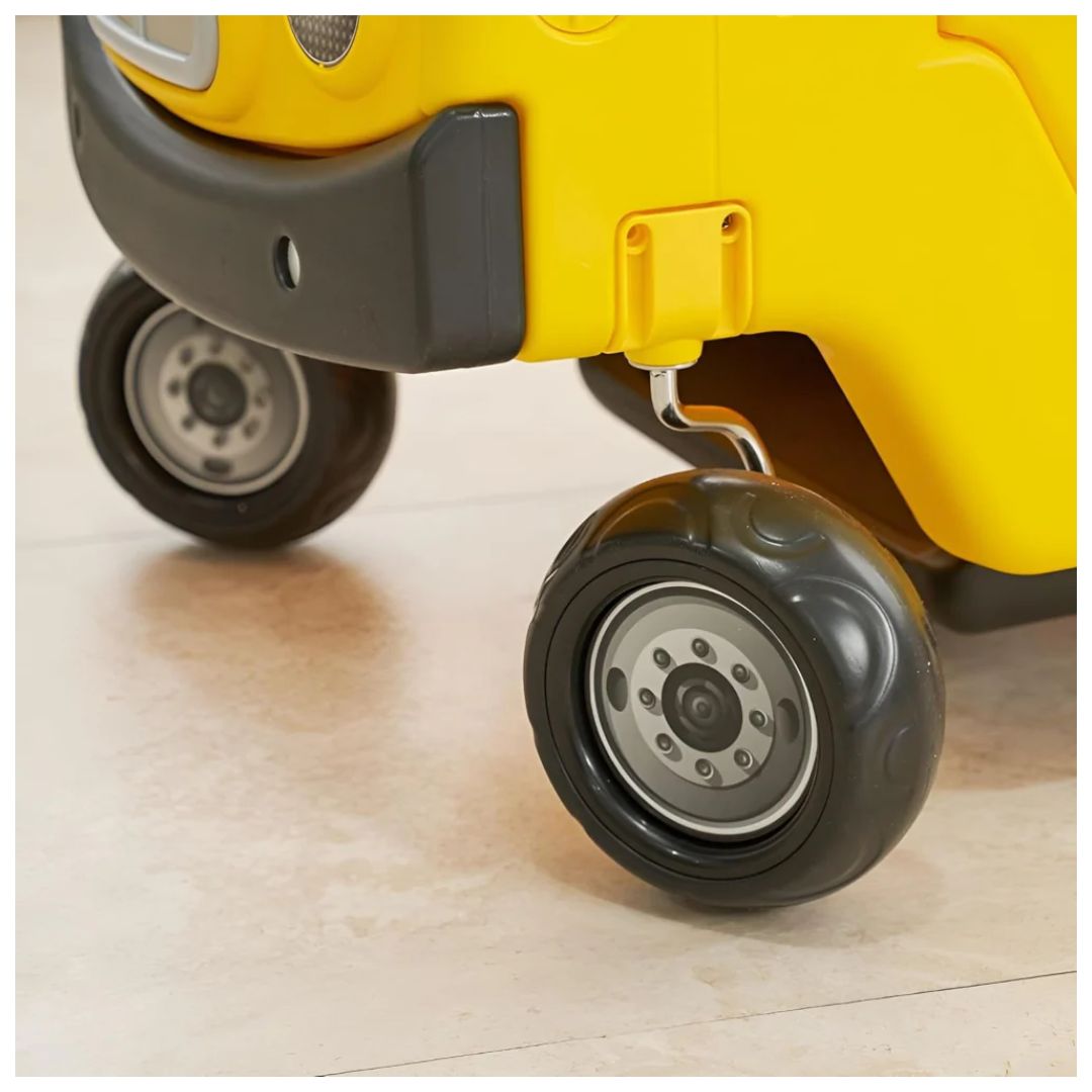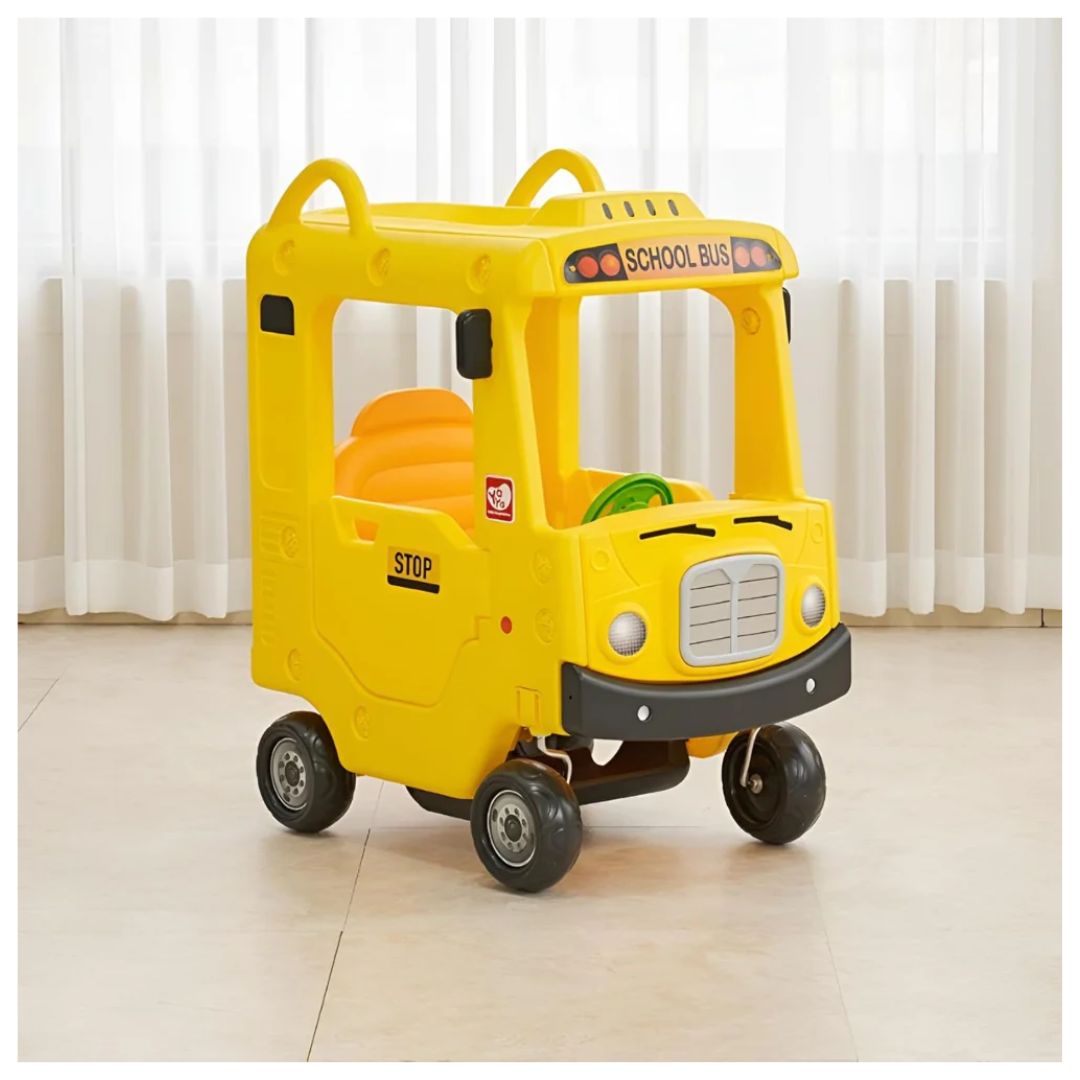 Give your child a fun, safe, and development-boosting riding experience with the Yaya School Bus Rooftop Car—a beautifully designed ride-on toy perfect for both indoor and outdoor play. Created with a soft, cushioned rooftop and a smooth, quiet structure, this rooftop bus car ensures hours of enjoyable play without disturbing anyone at home. Kids will love the exciting Vroom-Vroom driving experience, thanks to the interactive steering wheel equipped with melodies, lights, and playful sound effects. These features enhance pretend play and help spark creativity, imagination, and sensory development. The double opening doors make it easy for little ones to hop in and out, adding more realism and independence to their playtime. Parents can enjoy peace of mind with the car’s noiseless, non-toxic EVA foam wheels, which ensure a soft, quiet ride while also protecting floors from scratches. The 360° rotating front wheel offers easy maneuverability, making smooth turns possible even in tight indoor spaces—perfect for compact homes. Designed with thoughtful features, the Yaya Bus Rooftop Car includes a cute trunk-style storage compartment for children to store their favorite toys, snacks, or small accessories. A convenient rear handle allows parents to carry, guide, or push the car comfortably during outings. The sliding safety footrest can be used or removed based on your child’s age and comfort, offering added safety for younger children and promoting muscle development as they grow. With its spacious interior and ergonomic design, your child will enjoy a comfortable, relaxed ride every time—ideal for longer play sessions at home or outdoors. Combining fun, safety, and practical features, the Yaya Blue Bus Rooftop Car is the perfect companion for your child’s everyday adventures.
