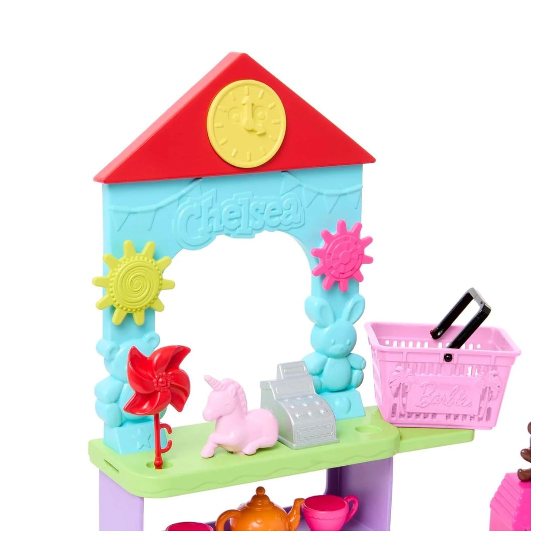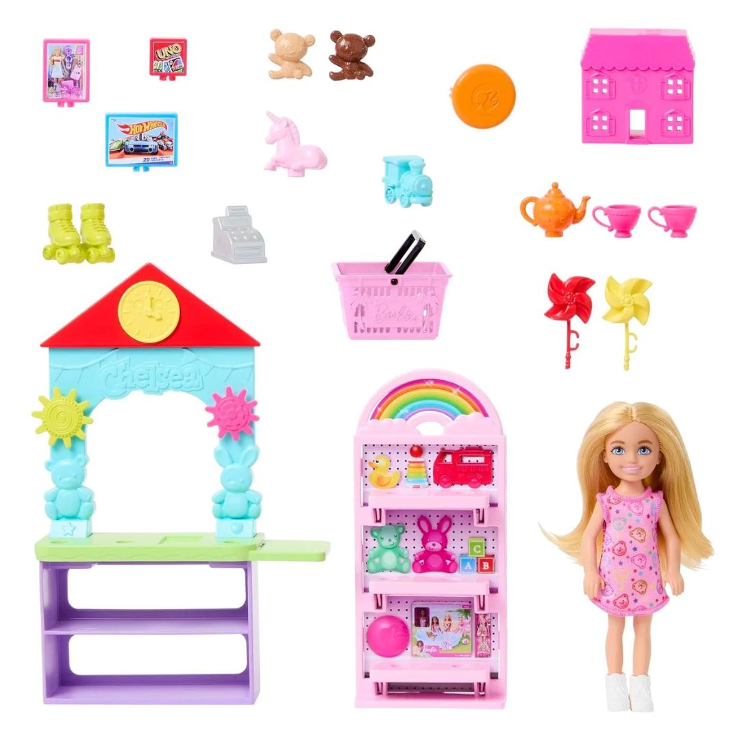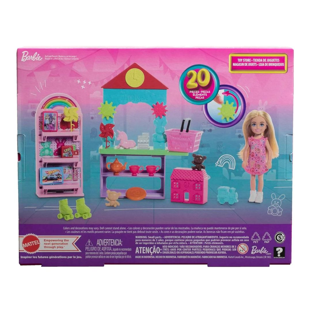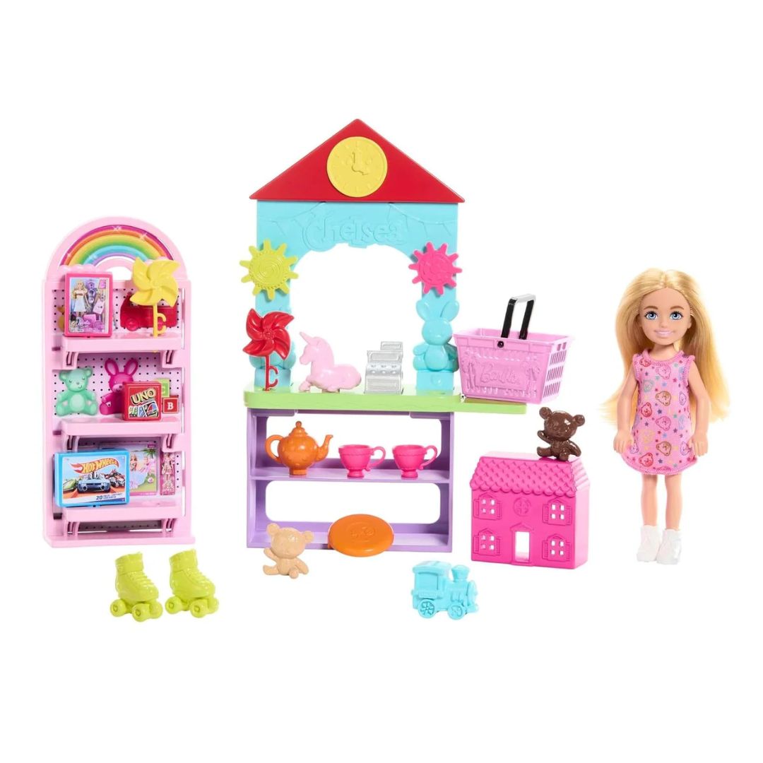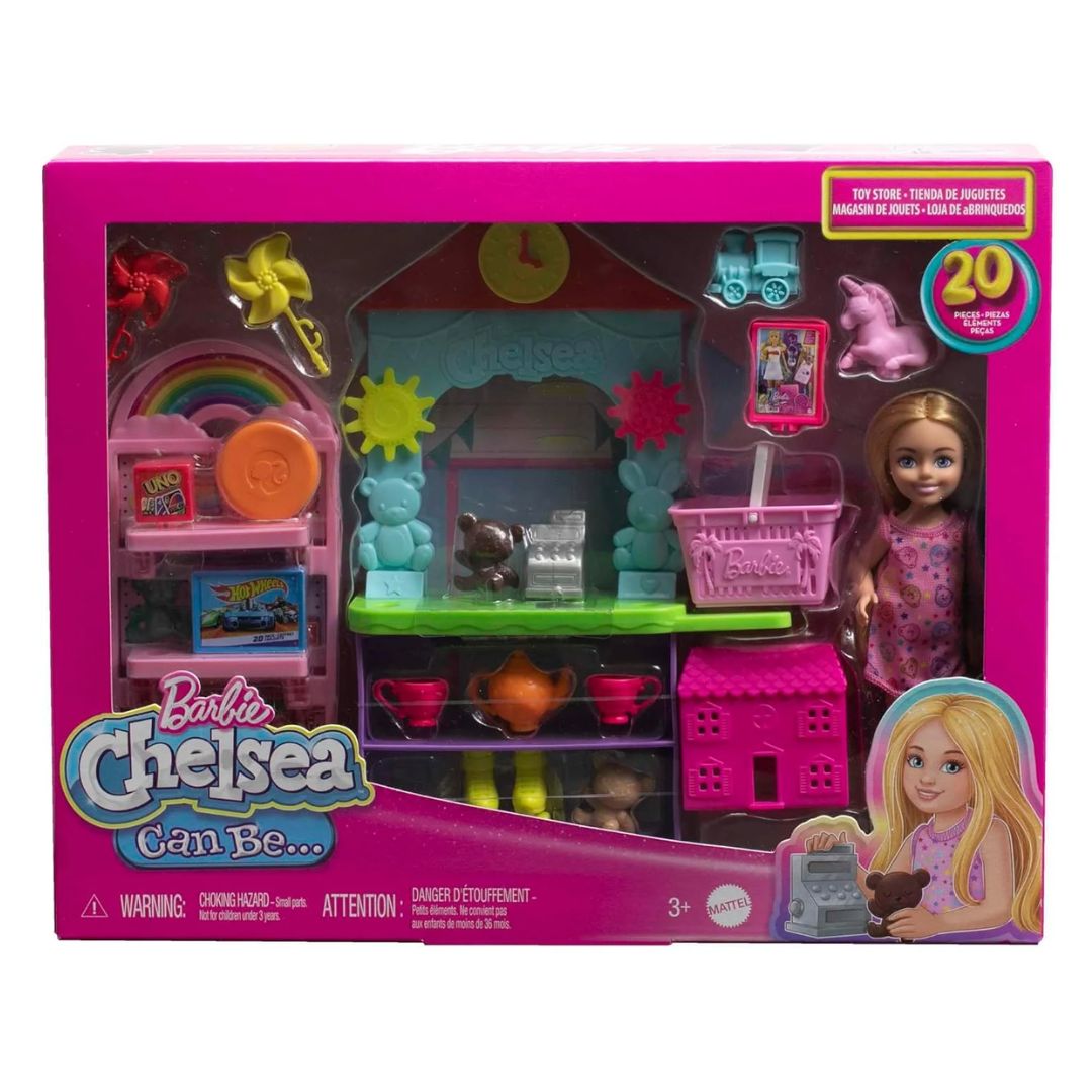 Bring the whole toy store home with the Barbie Chelsea Can Be… Toy Store playset! Kids will have so much fun with Chelsea doll as shopper or shopkeeper. They can arrange the 10+ toys on the shelves of the counter and display, fill the shopping basket and check out at the register. With 20 total pieces to play out a trip to a favorite destination -- the toy store, this Chelsea playset makes a great gift for kids 3 years and older. Doll cannot stand alone. Colors and decorations may vary.