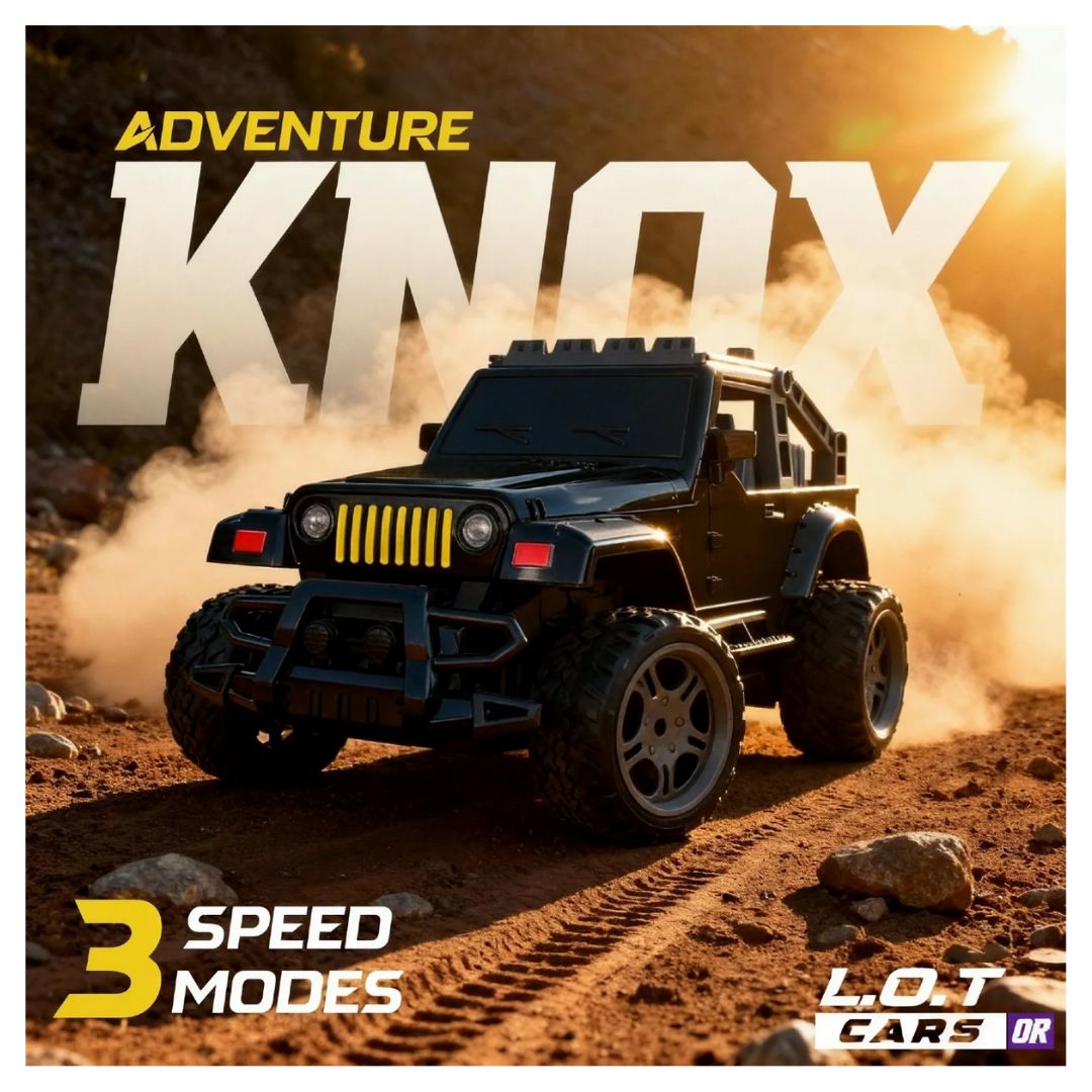 Knox comes with dual body styles : Pickup & Jeep, each built to take hits and keep charging. His joystick-style remote gives you razor-sharp control, and the LED headlights and taillights cut through terrain like he owns the night. With a durable, impact-resistant plastic build, Knox survives crashes, jumps, flips, and all the madness you throw at him.