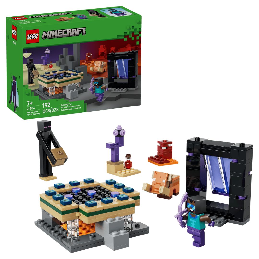 Transport Minecraft® players to a hands-on gaming adventure with the Nether & End Portal Journey (21584) gaming toy for boys and girls 7 years old and up. Pass through the portals to explore a build from each biome and embark on adventures with a Cool Hero minifigure, plus Enderman and a baby hoglin figures. This LEGO® Minecraft playset features an End portal and a Nether portal with functions to access small builds for each biome. Authentic accessories, including an enchanted bow and healing potion, inspire endless creative adventures with familiar scenes and Minecraft characters. This set makes a great gamer gift for Minecraft players, LEGO builders and fans of gaming decor. And, with the LEGO Builder app, kids can build with confidence– zoom, rotate in 3D and track progress with easy-to-follow digital instructions. Set contains 192 pieces.