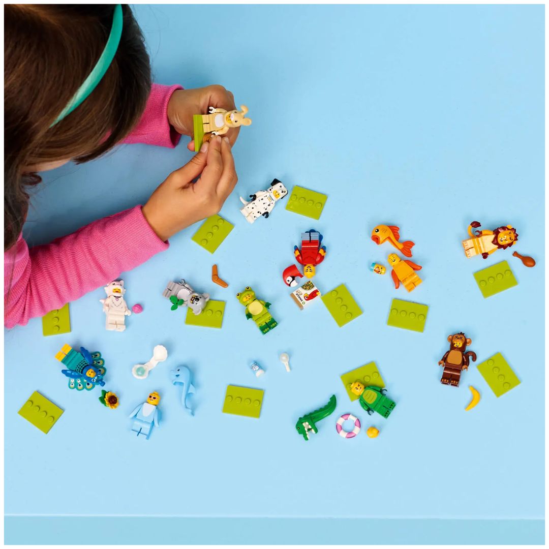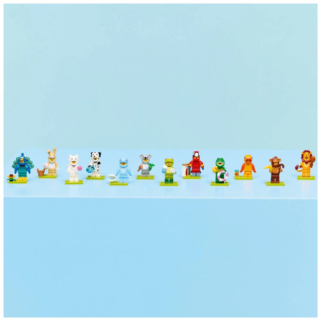 Girls and boys ages 5 and up can play out fun stories with 1 of 12 collectible figures from the LEGO® Minifigures Animal Series 28 (71051) small animal toy mystery boxes. There is 1 surprise LEGO minifigure in each box and a total of 12 charactersto collect including toy figures wearing parrot, lion, frog, crocodile, Dalmatian, goldfish, cute bunny, peacock, fluffy cat, koala, dolphin and monkey costumes. Each of the 12 minifigures comes in a sealed mystery box, and all are accompanied by at le ast 1 accessory. These detailed cute animal toys can be added to an existing collection, proudly displayed or used to create fun-filled stories. This small gift for kids who like animals and nature is a fun treat and inspires great storytelling and countless hours of playtime on their own or with friends.