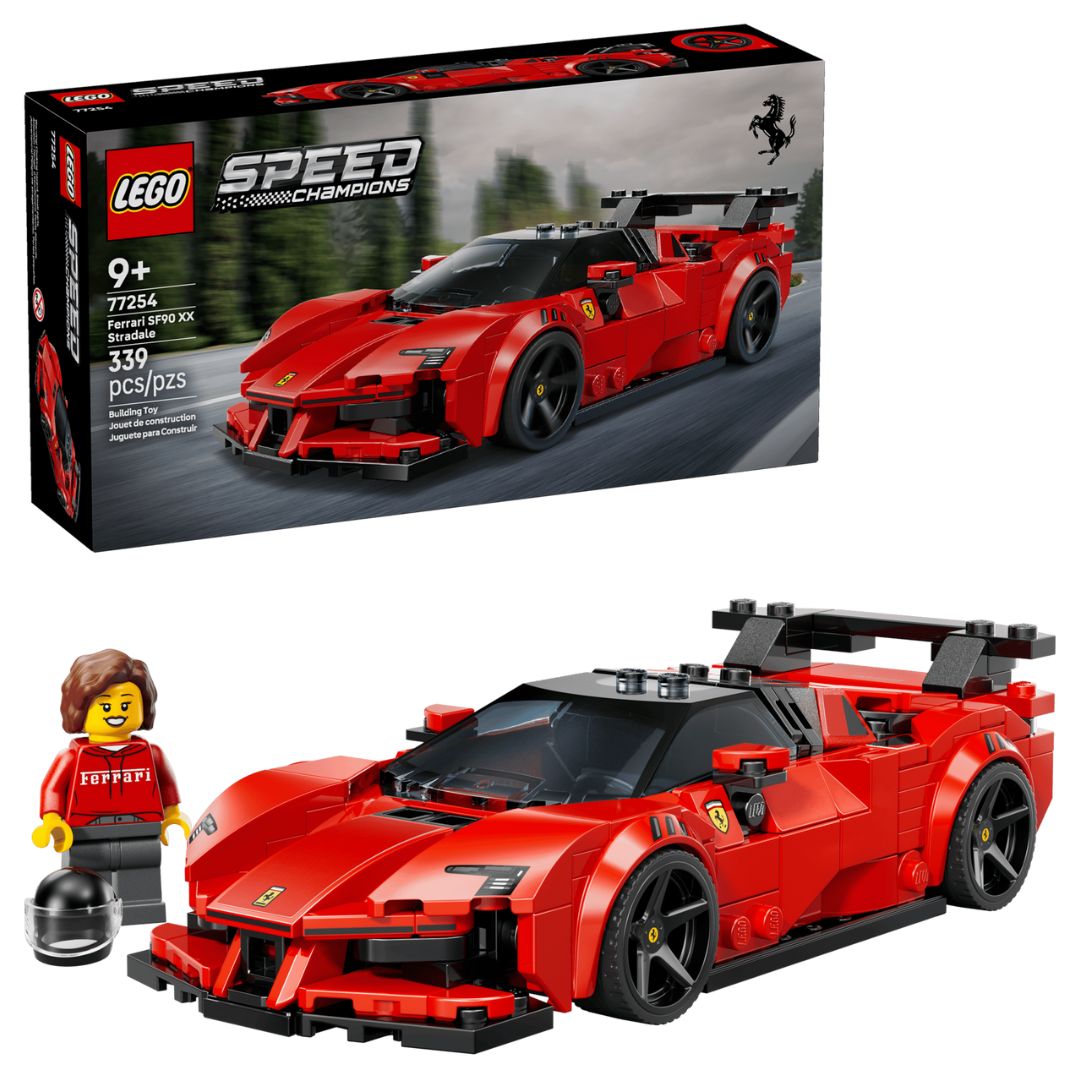 Boys and girls ages 9 and up can build, play with and display this stylish LEGO® Speed Champions Ferrari SF90 XX Stradale Sports Car (77254). The Ferrari model car includes many of the design details from the real-life version – Ferrari’s most powerful ever street-legal car. This Ferrari toy car features a cab-forward design, a rear wing, high tailpipes and rims decorated with the Ferrari shield. The car model kit also includes a driver minifigure wearing a Ferrari outfit and helmet to place inside the single-seat cockpit for kids to display and show their passion for the Italian car maker. LEGO Speed Champions building sets make great gift ideas for kids and let them build replicas from an extensive range of iconic vehicles. They can create each playset with confidence using the LEGO Builder app – zoom, rotate in 3D and track progress with easy-to-follow digital instructions. Set contains 339 pieces.