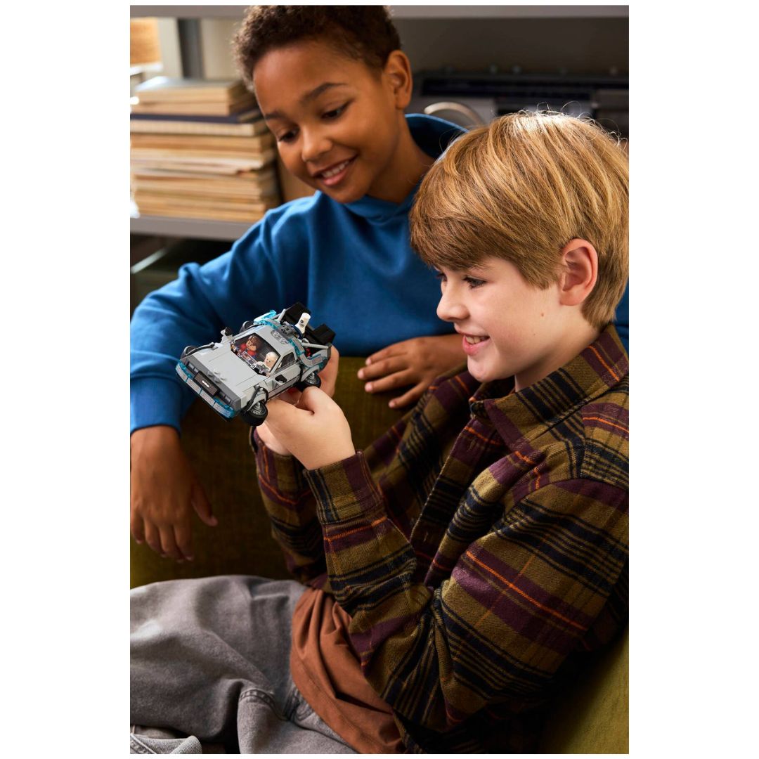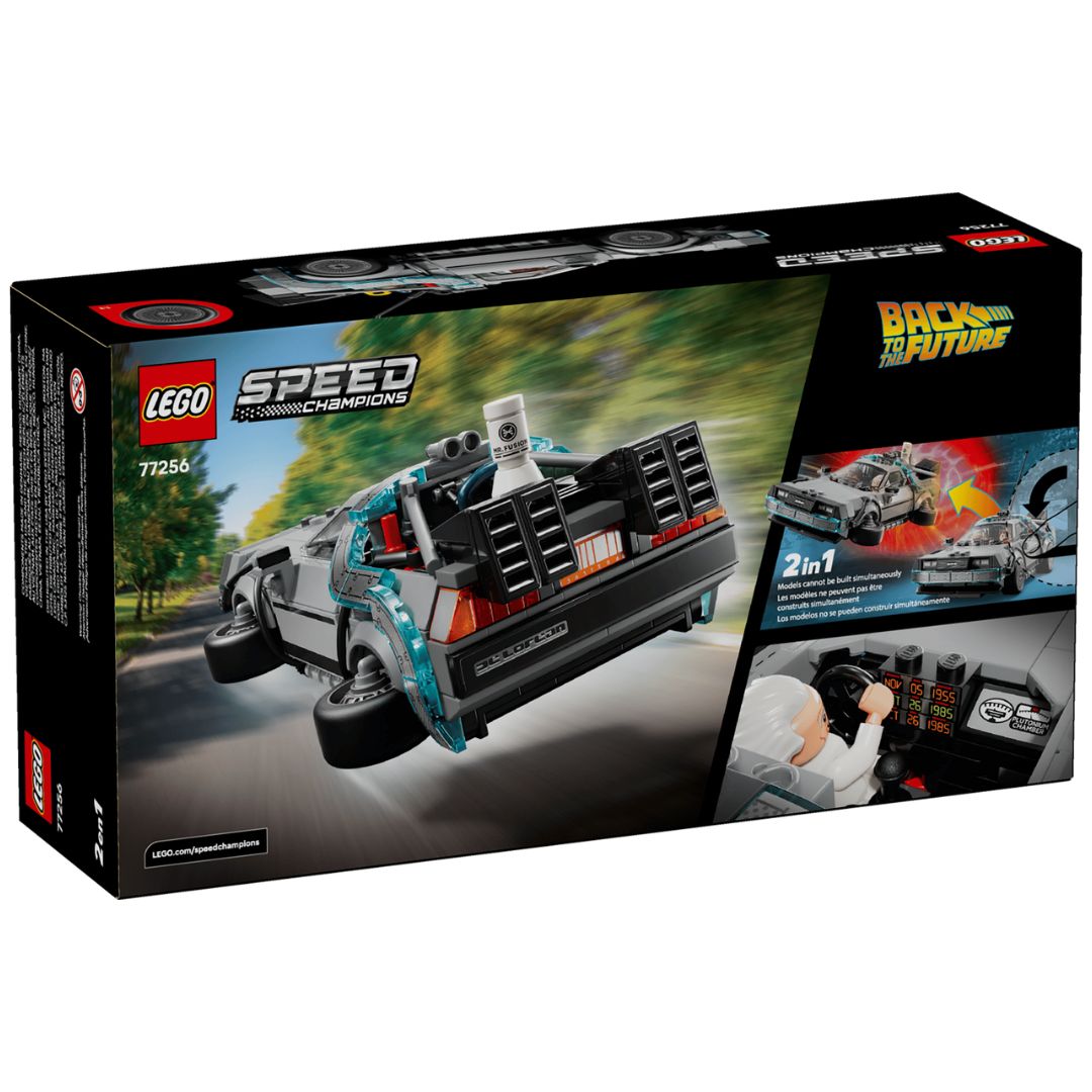 LEGO® Speed Champions Time Machine from Back to the Future (77256) model car kit lets kids ages 9 and up build, display and recreate action from the iconic movie franchise. This brick-built toy car includes many of the famous details from the model seen in the popular movies. Build this iconic car with a lightning rod and California license plate from the first movie before rebuilding it into its flying version from the second movie with Mr. Fusion, an orange license plate and sideways wheels. Both versions have rear air vents, a cockpit, the flux capacitor and time calculator. For added play value, the playset also comes with 2 minifigure characters from the movies: Doc Brown and Marty McFly to place inside the cockpit. A great gift for kids and nostalgic adults, they can build each playset with confidence using the LEGO Builder app, which lets them zoom, rotate in 3D and track progress with easy-to-follow digital instructions. Set contains 357 pieces.