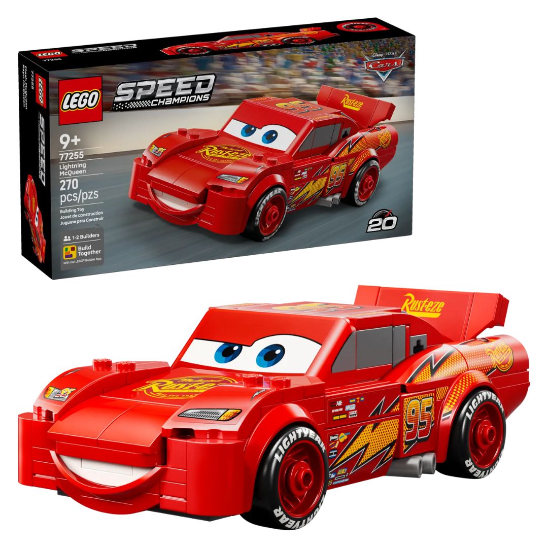 Celebrate the 20th anniversary of the beloved Disney Pixar movie Cars with this LEGO® Speed Champions ǀ Lightning McQueen (77255) building toy. This construction set for boys and girls ages 9 and up includes many of the design details from the iconic movie character. The Disney model features Lightning McQueen’s famous yellow and orange lightning bolt, number 95, Rust-Eze sponsor logo, tires imprinted with ’Lightyear’ and his famous headlight stickers. The car toy is also the only Speed Champions model with a detailed undercarriage so kids can enjoy extra play value. A great gift idea for kids and car fans, LEGO Speed Champions building sets let them build replicas from an extensive range of iconic vehicles. They can create each playset with confidence using the LEGO Builder app, which lets them zoom, rotate in 3D and track progress with easy-to-follow digital instructions. Set contains 270 pieces.