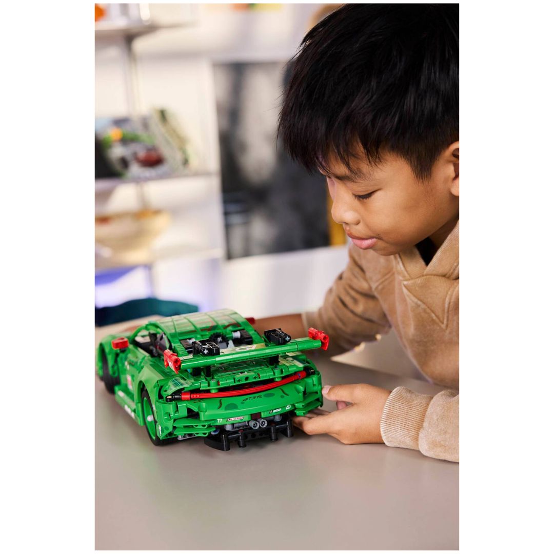 Fuel epic play with this dinosaur-themed endurance race car for kids ages 11 years and up. Packed with cool details, the LEGO® Technic™ Porsche 911 GT3 R REXY AO Racing Car (42224) is made for boys and girls who love fast-action play. Kids can take control using the steering knob on top, then check out the working suspension on all 4 wheels, the rear wheel drive with differential, 6-cylinder boxer engine with correct firing order, opening doors and trunk and synchronized air jacks. And with its fierce T. rex-themed livery, this model looks just as awesome on display as it does on the racetrack. This set makes a fun gift for dinosaur fans and car enthusiasts. LEGO Technic sets feature realistic movements and mechanisms that introduce young LEGO builders to the universe of engineering in an approachable way. Kids can build with confidence using the LEGO Builder app – zoom, rotate in 3D and track progress with easy-to-follow digital instructions. Set contains 1,313 pieces.